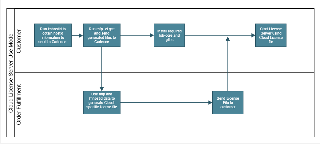 3. Provide the lmhostid information and mfp files generated to Cadence for license file generation.