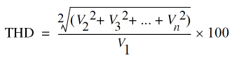 where V1 is the RMS value of the fundamental frequency voltage, and V2, V3, ..., Vn are the RMS values from second harmonic through last harmonic frequencies.