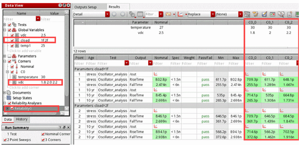 Consider the following setup in which the variable cload is a sweep variable. Note that the corner C0 is also swept for different values of vdc.