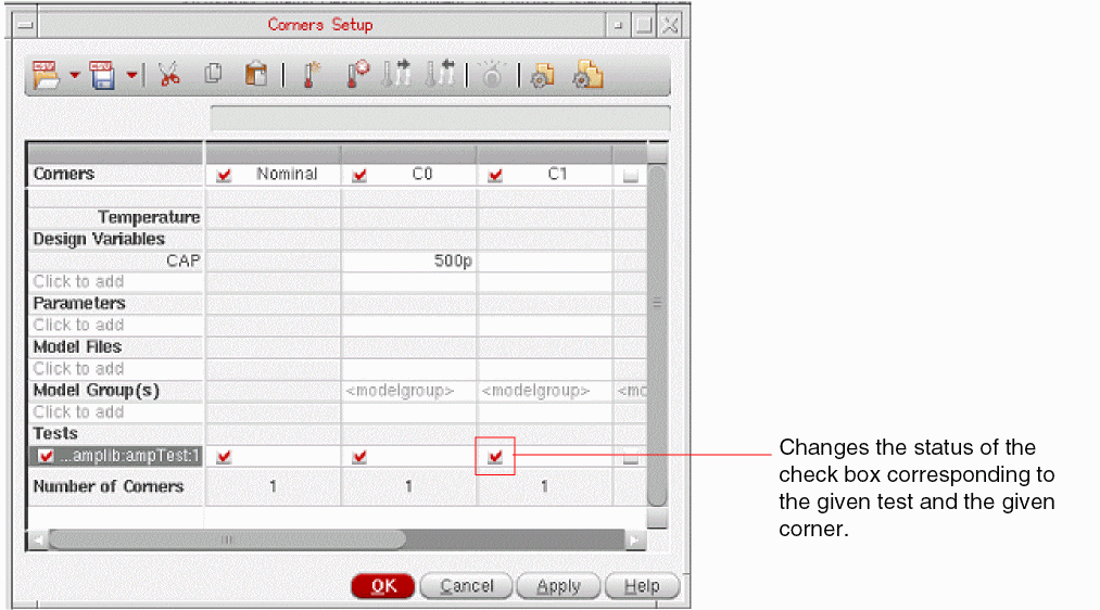 Enables or disables simulation of a test for the given corner. This function changes the status of the check box corresponding to a test in the column for the given corner.