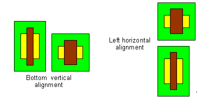In Grid Placer, the Modgen's horizontal and vertical alignment member parameters are relative to a member's left or bottom neighbor. Therefore, setting a member's alignment to the left aligns its left edge with the left edge of the member below it. If the member is in the bottom row, vertical alignment had no effect, as shown in the following image: