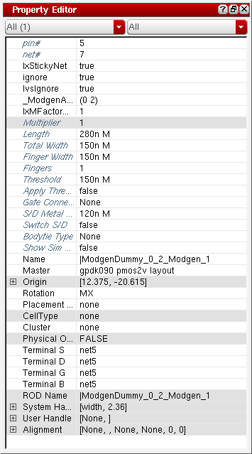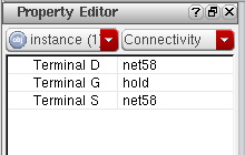 Using the Property Editor Assistant: Use this method to individually reset connectivity of terminals within a dummy. Each terminal can be connected to a different net.