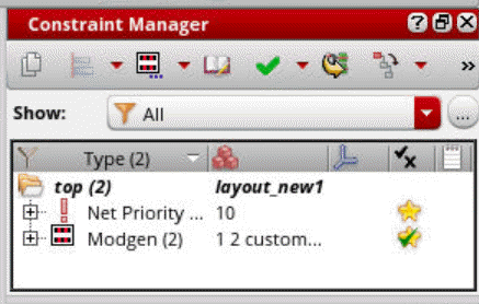 - Select the Modgen and choose the Module Generator icon in the Constraint Manager assistant toolbar.