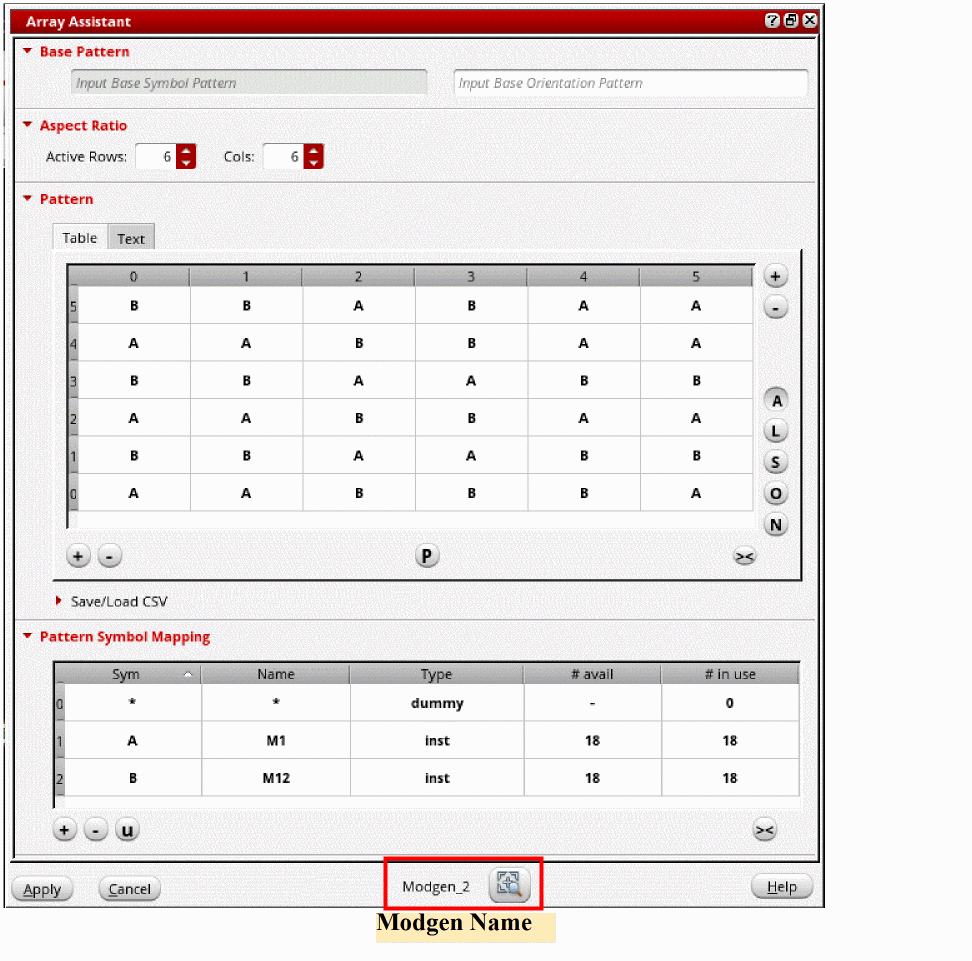 The Modgen Array Assistant is a modeless, dockable assistant that facilitates the visualization and editing of Modgen device arrays in an abstracted manner. It is a unified interface that allows you to quickly create and edit Modgen device arrays through its use model, which batches edits together before applying them to the layout canvas.