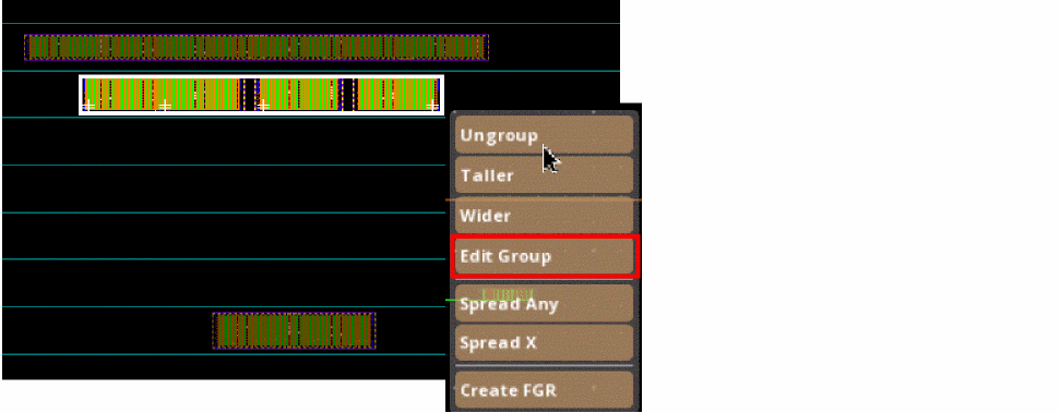 - If you have selected devices in the layout canvas, select Group to create a group that includes the selected devices. If you have selected Modgens, skip this step.