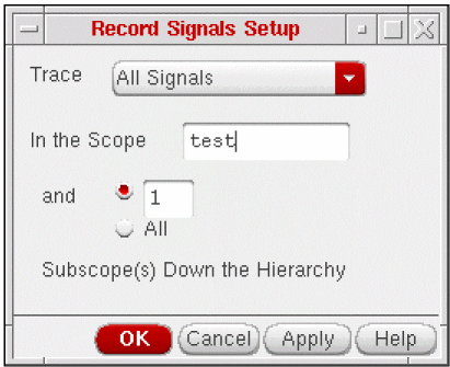 Specifies a set of signals to trace and save in the SHM database. The SHM database stores waveform displays. On selecting this option, the Record Signals Setup form is displayed.