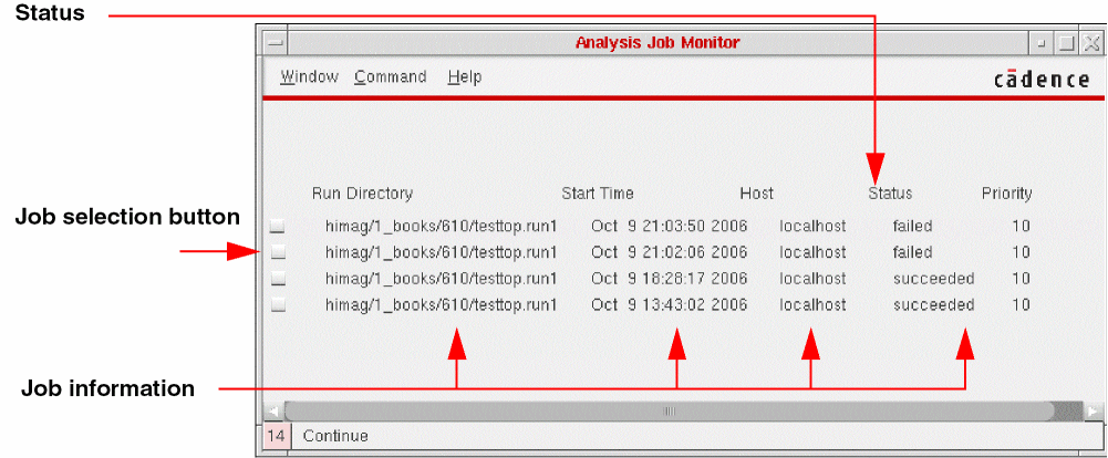 On selecting Job Monitor option, the Analysis Job Monitor window appears. The window displays the following: