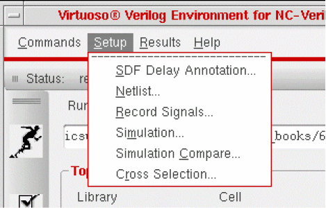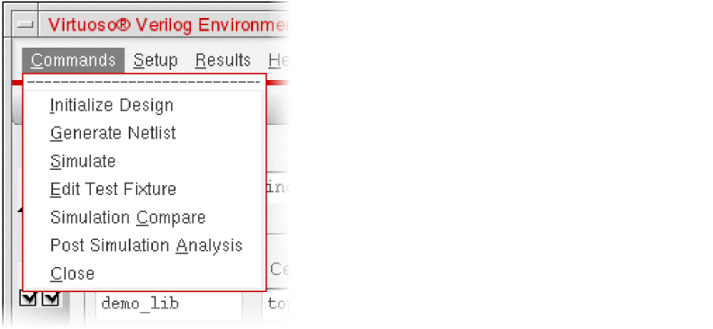 Starts the NC-Verilog simulator. You must initialize design before you can access the other fixed menu commands. -