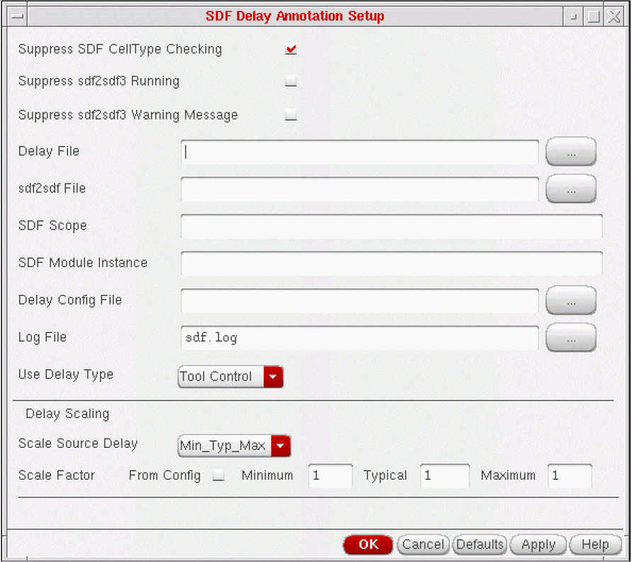 - The Scale Source Delay setting specifies to use the maximum delay in the SDF file as the initial value for scaling Minimum, Typical, and Maximum delay values.