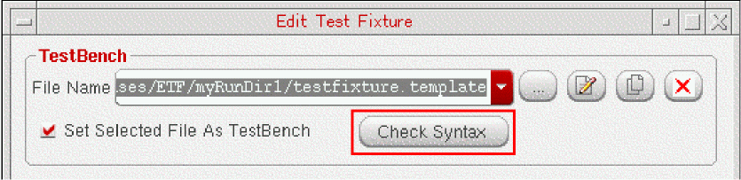 You can view or edit the contents of the currently selected test fixture files in a text editor. To open the testbench or stimulus file from the Edit Test Fixture form, click Edit/View Selected File(