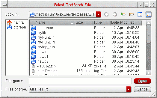 - Browse to the directory where the testbench you want to use is saved and select the file.
