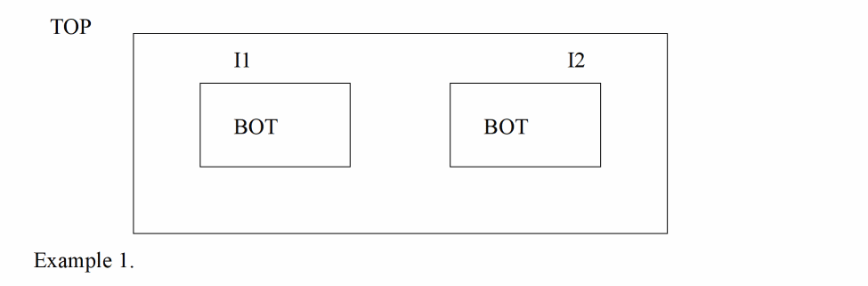 Consider an example in which cell TOP has 2 instances, I1 and I2 of BOT cell. Both these reside in library LIB. The cell BOT has instances of stopping cells.