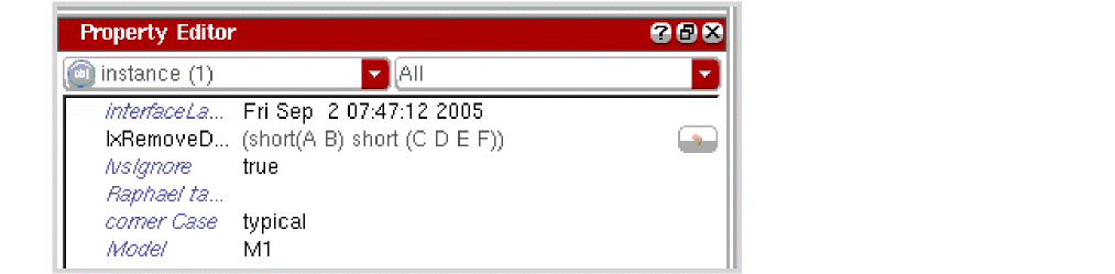 Set this property on an instance, or its place master or switch master, to ignore that instance when netlisting for a particular simulator. For example, when you set the property as shown below, the instance will be ignored by theauCdlandvhdlnetlisters. For details, see “nlIgnore”.