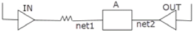 When you netlist the design using the NC-Verilog Integration Environment, R1<0:1> is removed from the resulting netlist. The scalar net NET2 becomes the surviving net for the shorted connection between I1<0:1> and I2<0:1>, as illustrated in the following figure.