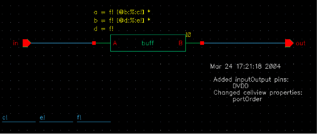 Sometimes you may want to place instances of symbols that do not represent components of the circuit. For example, your company might have a policy that requires its corporate logo to appear on all schematics drawn by its designers. The logo symbol can be stored in a cellview in a library along with the symbols of the circuit components such as a NAND gate or an INVERTER.