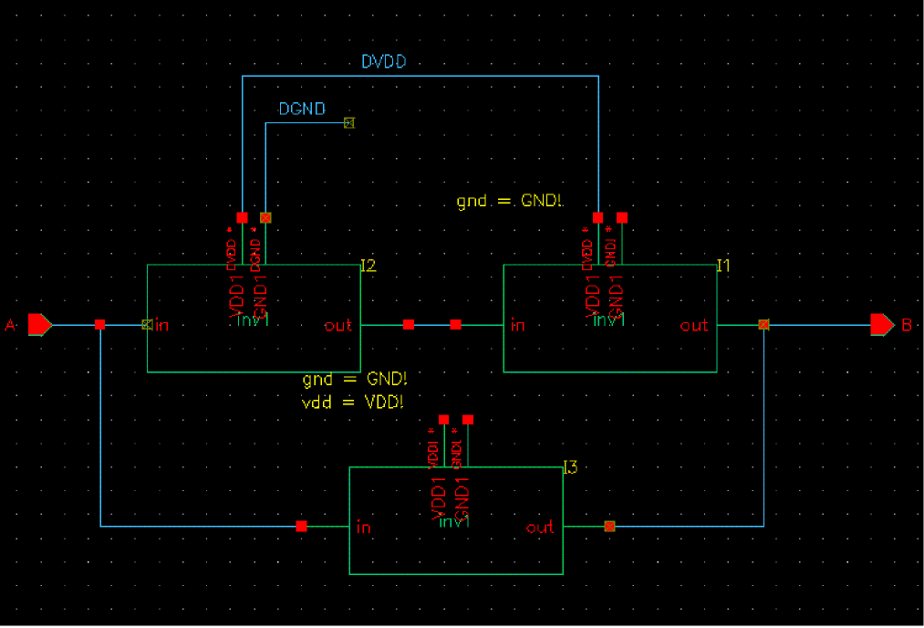 During hierarchical netlisting, you can short the terminals of a device. For example, you can remove parasitic devices by shorting terminals. The following figure illustrates how you can short the terminals of a device.