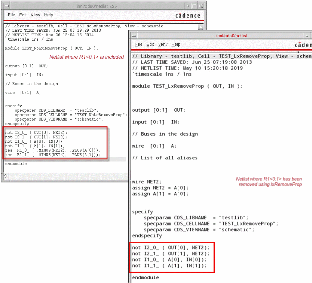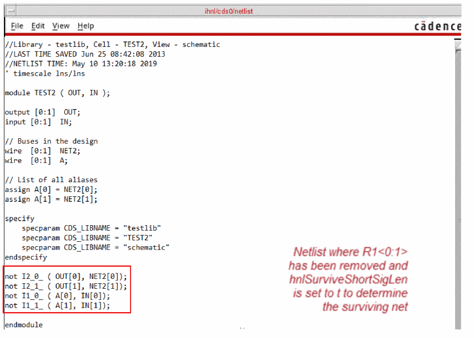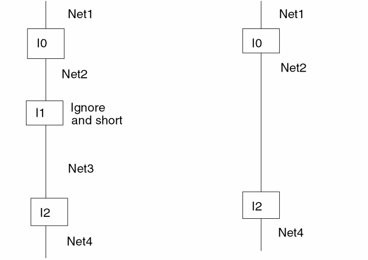 nlAction=ignore setting. The only difference will be the replacement of the removed instance by the surviving net.hnlUserShortCVList SKILL variable to specify the cellview names in a list to remove the devices that have two terminals. Error Handling