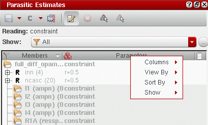 Figure 2-3 Right-clicking over the Parasitics & Electrical Setup Assistant Column Headers