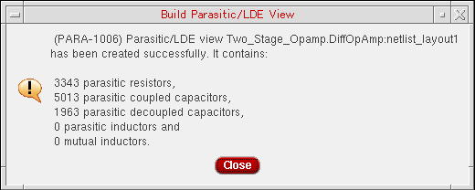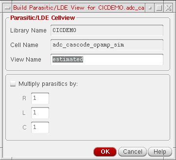 The library, cell, and view name will also be displayed in the Build Parasitic/LDE View form (see Building the Parasitic/LDE View) that you use to build the parasitic/LDE view.