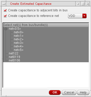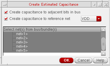 Use this field to set power and ground nets. Parasitic aware design uses these to determine which parasitic capacitances are decoupled (one side of the capacitor is connected to a power or ground net) or coupled (the capacitance is between two other nets). |