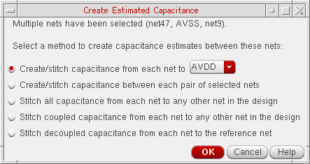 Capacitance is compared by summing all coupled capacitors and summing all decoupled capacitors on each net. Nets that have no estimates will be ignored.