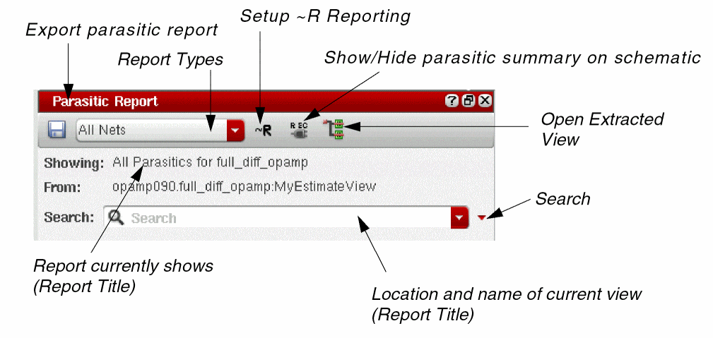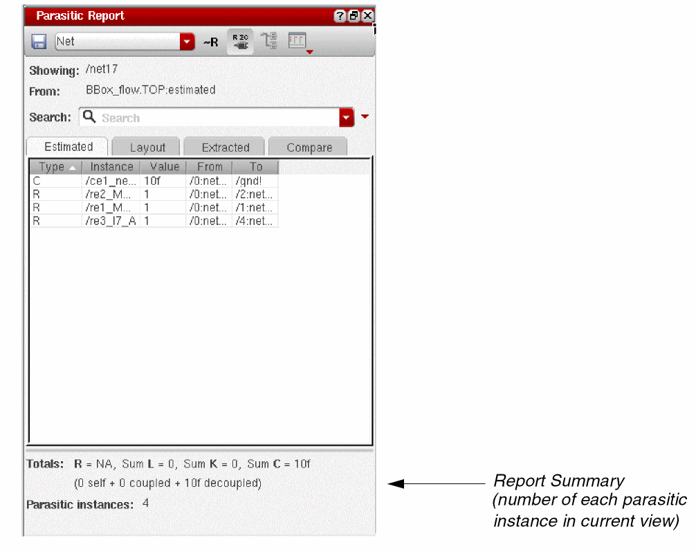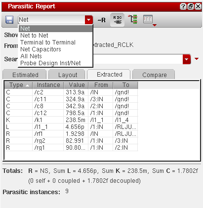 Parasitics-Report: The Parasitics-Report workspace is used to report parasitic estimated/extracted values and compare parasitic views. This workspace contains the