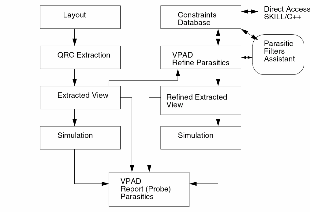 The parasitic aware design flow provides the functionality to generate estimated parasitics, pre-layout, for simulation. Here, parasitic values are specified through estimates which are stored in parasitic estimate cell views separate from, but still associated with, the schematic view.