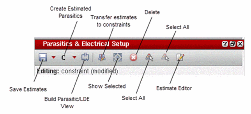 Parasitics-Estimates: The Parasitics-Estimates workspace is used for the specification of parasitic estimates. This workspace contains the Parasitics & Electrical Setup Assistant.