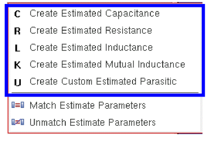 - Create Estimates (see Parasitics/LDE – Create Estimates)