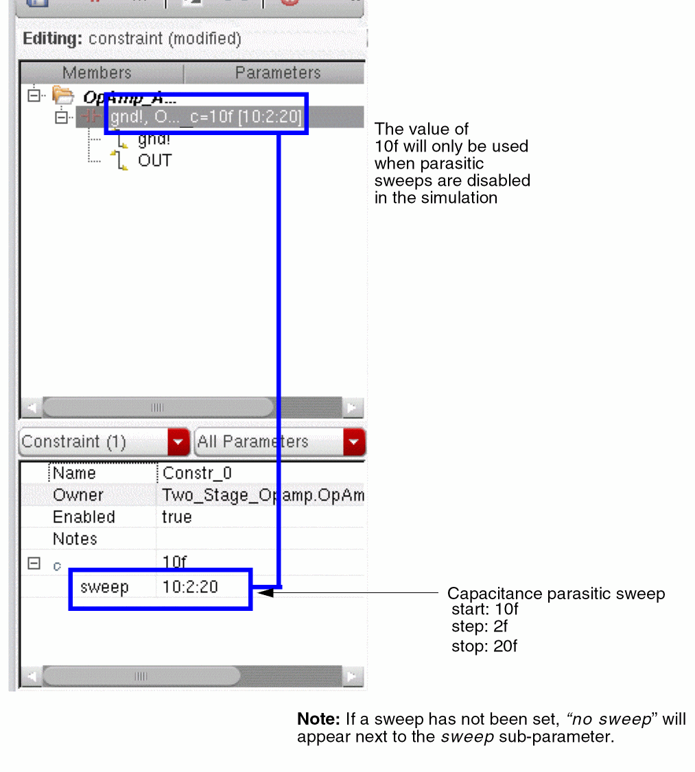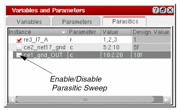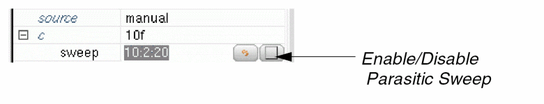 For information about enabling or disabling individual parasitic parameters, see Enabling and Disabling Parasitic Sweeps.