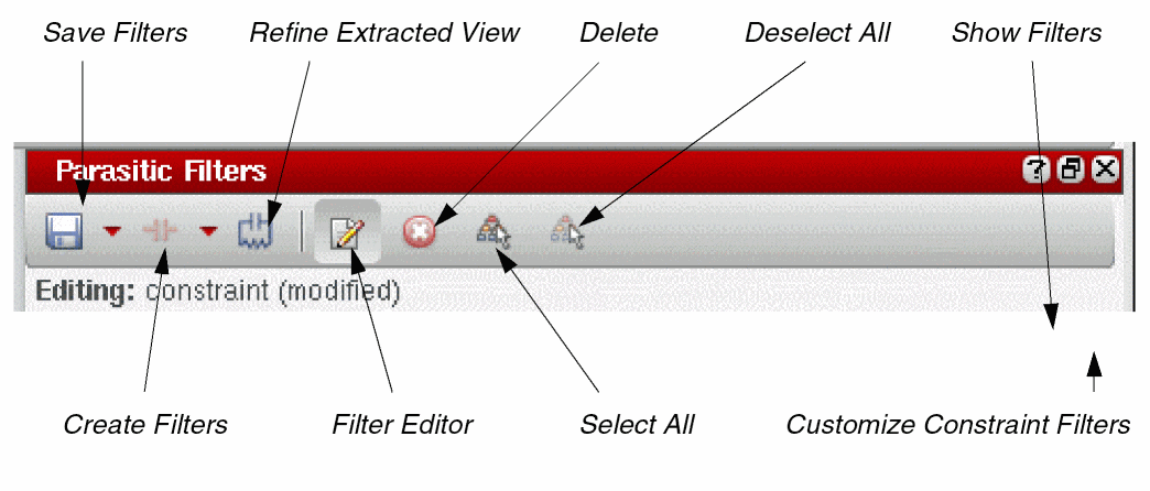Parasitics-Filters: The Parasitics-Filters workspace is used to generate refined extracted views. It comprises of the Parasitic Filters Assistant.