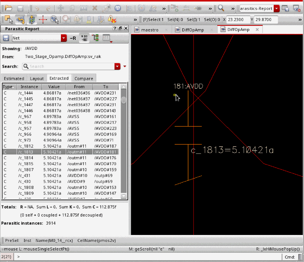 - Generate reports on parasitics in parasitic/LDE (estimated) and extracted views