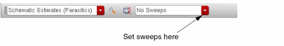 The Sweeps drop-down option, in the Parasitic Mode Toolbar, allows you to choose whether to sweep parasitics and/or device parameters during simulation. This allows you, for example, to sweep estimates during a sensitivity analysis to find out how sensitive your design is to parasitics.