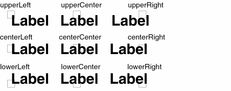 Justification controls the origin of the text. For example, upperLeft sets the origin to the upper left corner of the text. When you enter a coordinate to place the text, the origin of the text appears at that coordinate.