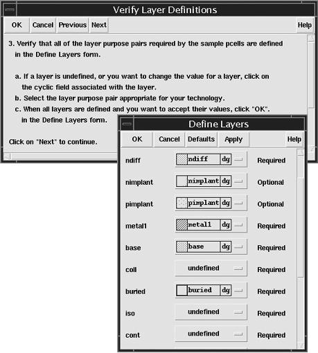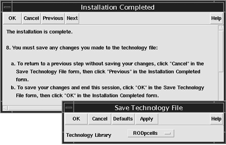 The changes you make to the layer definitions and design rules during this installation session override any previous changes you made to the technology file.