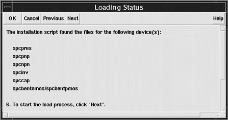 Click Next.If you specified an invalid path, the Install Path Error dialog box appears. Click OK in the dialog box and specify a valid path.The Loading Status form appears and confirms that the files for the devices you chose to install were found in the directory.