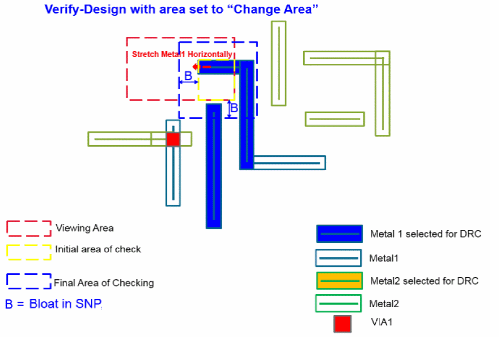 This mode allows you to conduct multiple layout editing and tracks these modification between each DRC. Once you are satisfied with the editing, you can invoke Pegasus Interactive to check on the final changed area. Its final area is computed based on the final layout modifications plus bloat value defined in the current active snapshot.