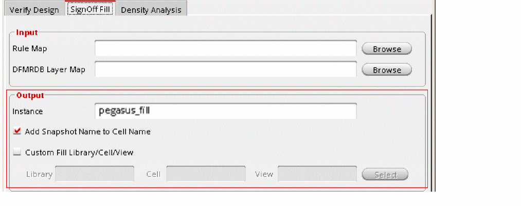 pegasus_filland secondary prefixsnapshot_nameto the name of the cell and puts it to the same library as the parent cell. You can change this behavior from the Pegasus Interactive Run Options form.