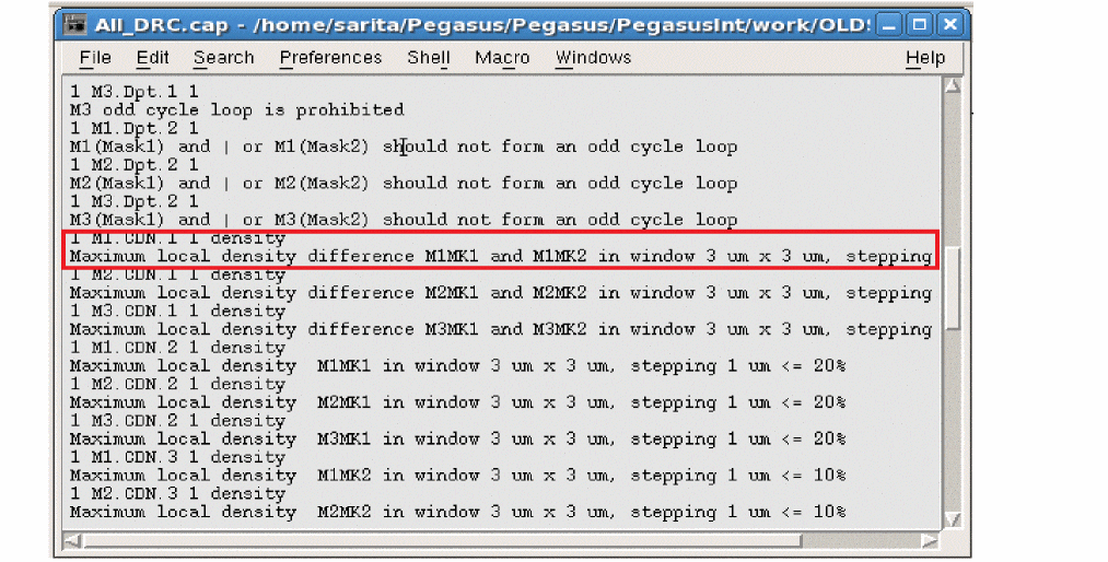 For the .cap file, it contains rule types that Pegasus Interactive refers to for either density or connectivity type rules exclusion. Below example shows a typical content of .cap file. Its rule status' syntax is composed as following: