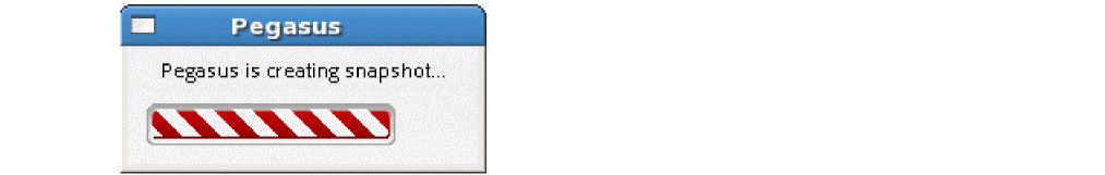 To generate a snapshot, enter the required inputs in Pegasus Interactive Snapshot Creator. Then click Apply or OK to invoke snapshot creation. During Snapshot Creation, following popup box indicates the progress of snapshot generation: