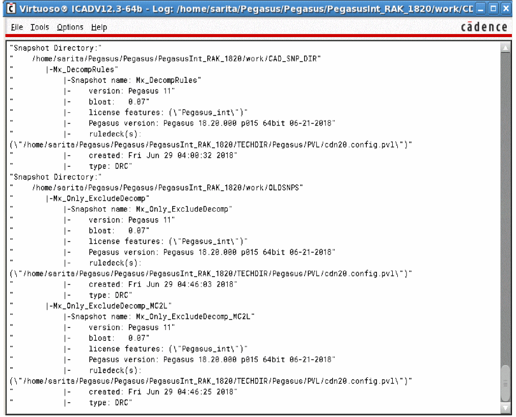 To view the header of the current active snapshot, info can be printed out in CIW after clicking INFO: Print Current Snapshot Header.