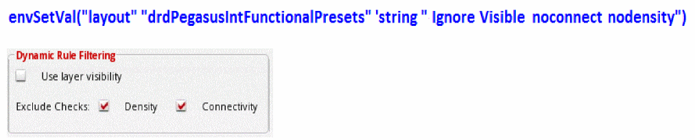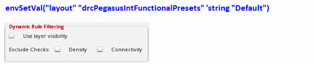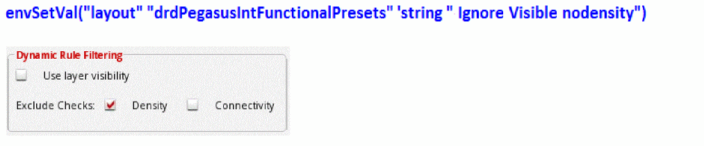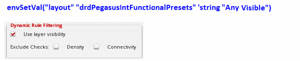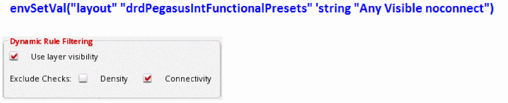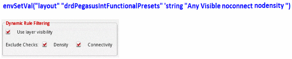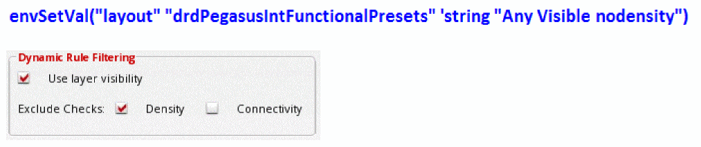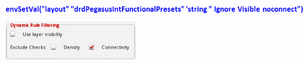 Pegasus Interactive has a built-in intelligence to select rules based on the layer visibility. In other words, you can ask Pegasus Interactive to select checks based on current visible layers displayed in the Palette. To effectively use this feature, this dynamic rule filtering capability should be paired up with Virtuoso valid LPP utility. Then, Pegasus Interactive further performs rule selection based on current visible layers display status in the Palette. Essentially, it becomes a What-You-See-Is-What-You-Check utility when they are paired up. Tool makes the assumption that for any visible layer displayed in the Palette that matters to you, you only want to ensure editing does not introduce any unforeseen DRC violations which are avoidable during layout editing and planning.