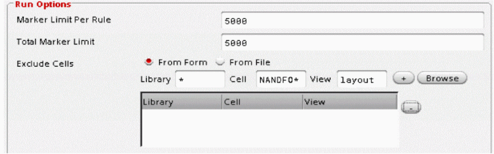 By selecting the From Form option, you can either fill cell information explicitly in the Library, Cell and View text boxes or through the Library Browser form. Latter automatically fills in the Library, Cell and View text boxes once you finalize selection in the library browser.