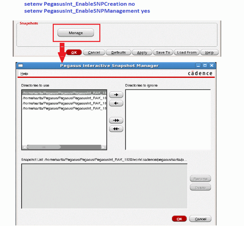 The content of snapshot setting field can be customized. The intent of this use model is to give CAD administrator control on the snapshot accessibility to target users. CAD administrator determines whether snapshot should be generated or maintained either globally or locally. Based on this decision, snapshot field content display can be controlled through following shell environmental variables: