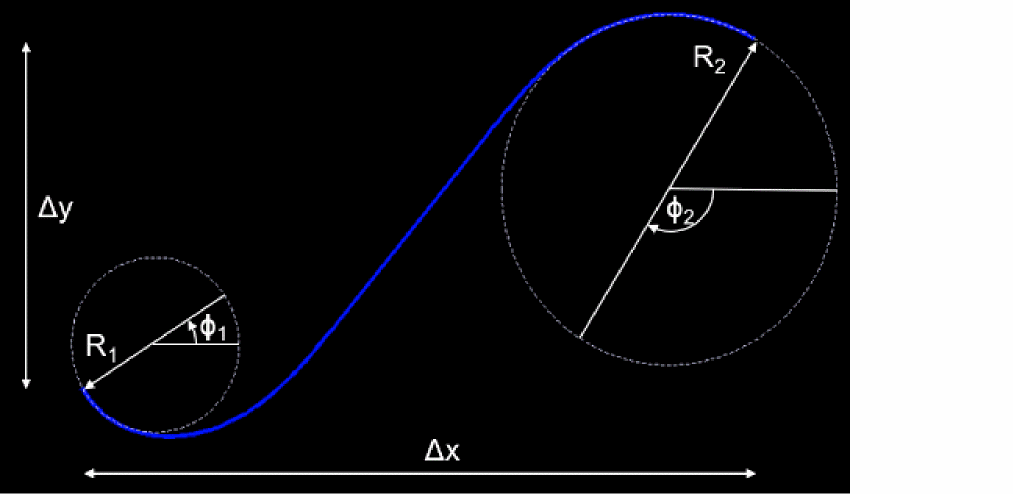 This limits the solution space to only three classes of curves, namely straight lines, circular arcs and clothoids. Curve connectors are thus a special case of clothoid splines.