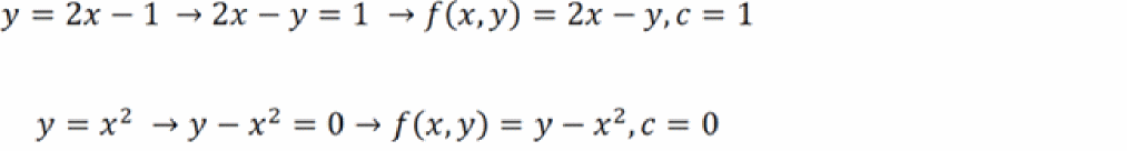 A curve can also be represented as a path traced by a point. This means that if x and y are Cartesian coordinates describing the position of a point of a curve, the curve is represented as: