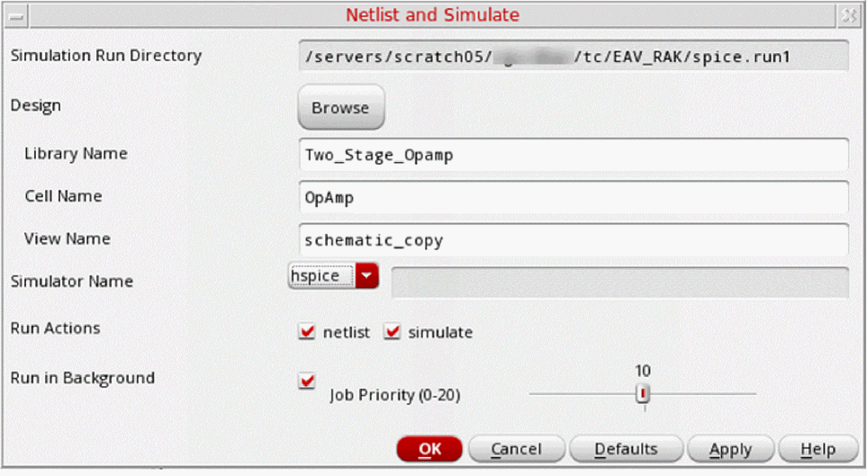If you click Cancel, the simulation is not run. If you click Defaults, the values in the form are reset to the default values.