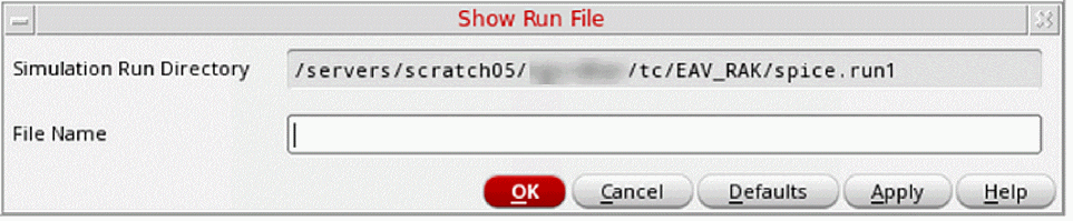 In the schematic window, select Simulation – Show Outputs – Show Run File.