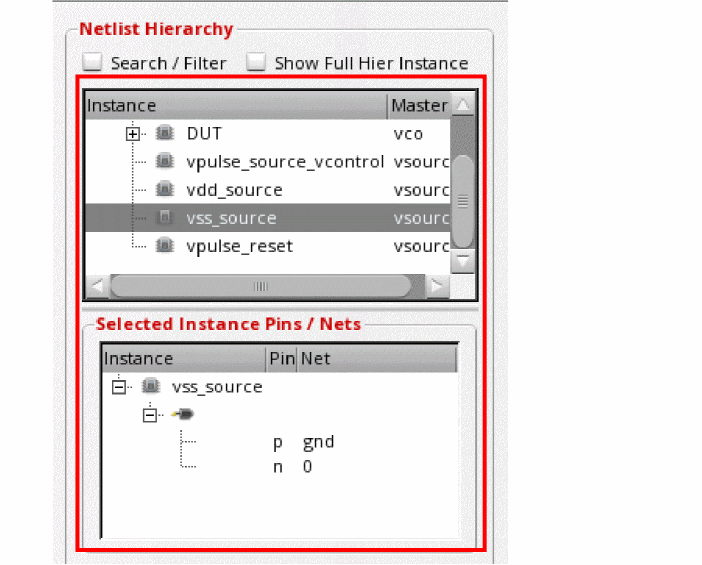 The tool reads the initial netlist used for that point and loads the instance and pin details from the hierarchy in the Netlist Hierarchy assistant.