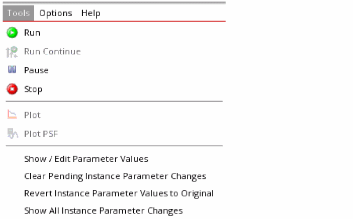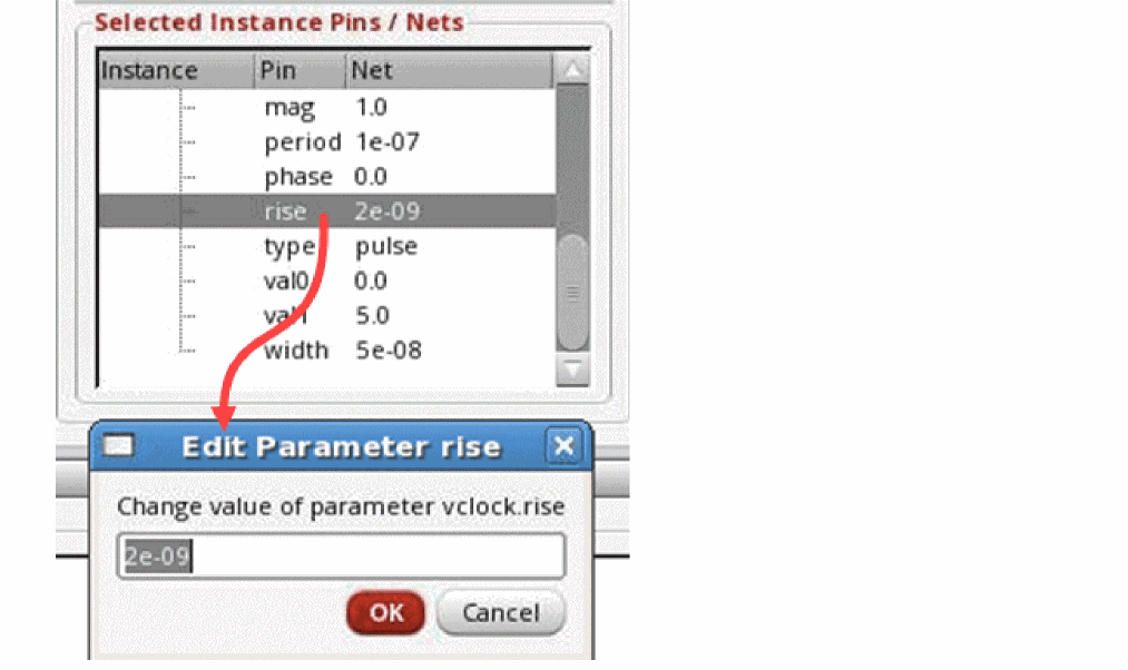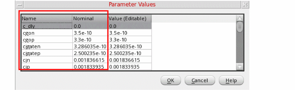 Choose Tools – Show/Edit Parameter Values to view the parameter values saved in the netlist for the selected point. The Parameter Values form is displayed.